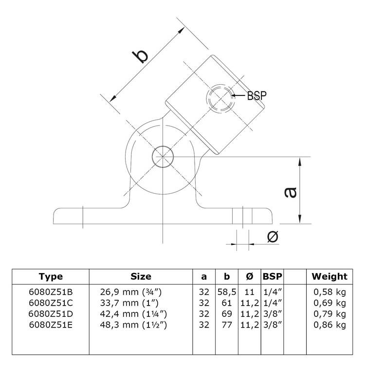 Dette justerbare basebeslag til Ø27 mm rør er udviklet til montering på plane underlag, hvor røret skal kunne vinkles i forhold til basen. Produktet er ikke strukturelt og må ikke anvendes som bærende bundbeslag i gelænder- eller rækværkssystemer. Det er heller ikke designet til at modstå sidebelastninger. For stabil opbygning skal konstruktionen altid understøttes af faste, ikke-bevægelige beslag.