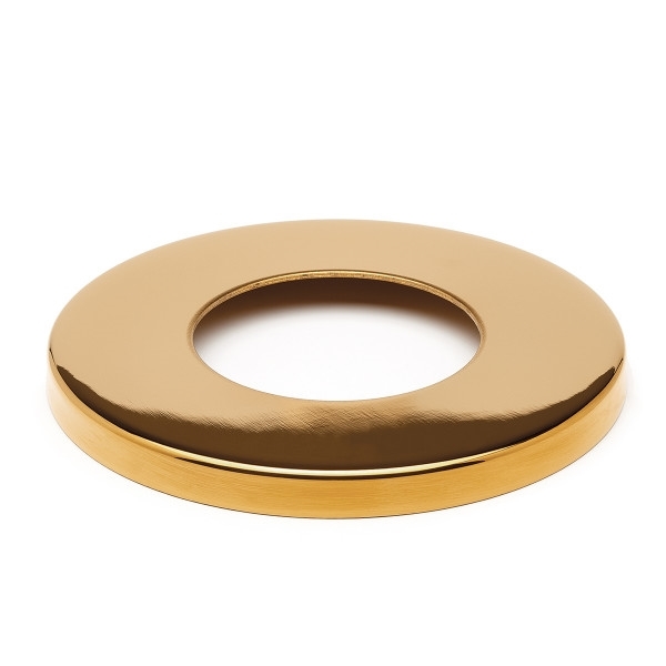 Dækroset til Ø38,1 mm rør i messing-look. Bruges som afslutning, hvor røret møder gulv, væg eller loft, og hvor der ønskes en pæn og dækkende kant rundt om røret. Rosetten monteres sammen med en gulvflange, hvor flangen fungerer som underbeslag, og dækrosetten efterfølgende skjuler montagepunkterne og giver en glat overgang mellem rør og flade. Rosetten føres ned over røret og placeres mod underlaget.