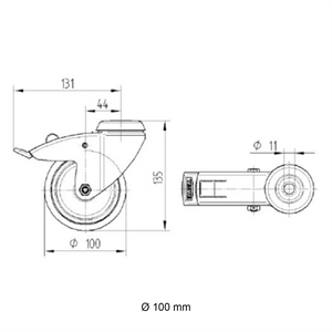 Hjul Ø100 mm i galvaniseret stål med bremse. Et kraftigt hjul til større stativer, borde og konstruktioner, hvor du har brug for høj stabilitet og mulighed for at flytte tingene rundt, når det er nødvendigt.