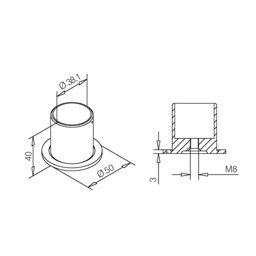 Samleflange med muffe til Ø38,1 mm rør i messing-look. Flangen anvendes, hvor røret skal afsluttes og fastgøres mod montageflade. Typisk brugt ved gelændere, bardiske og fodhvilere.