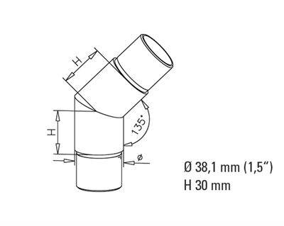 Flush vinkel 45° i messing-look til Ø38,1 mm rør, til gelændere, bardiske og fodhvilersystemer.